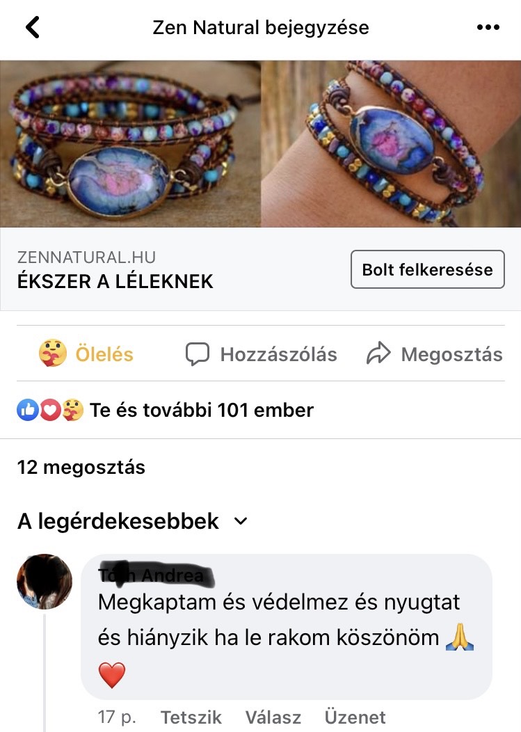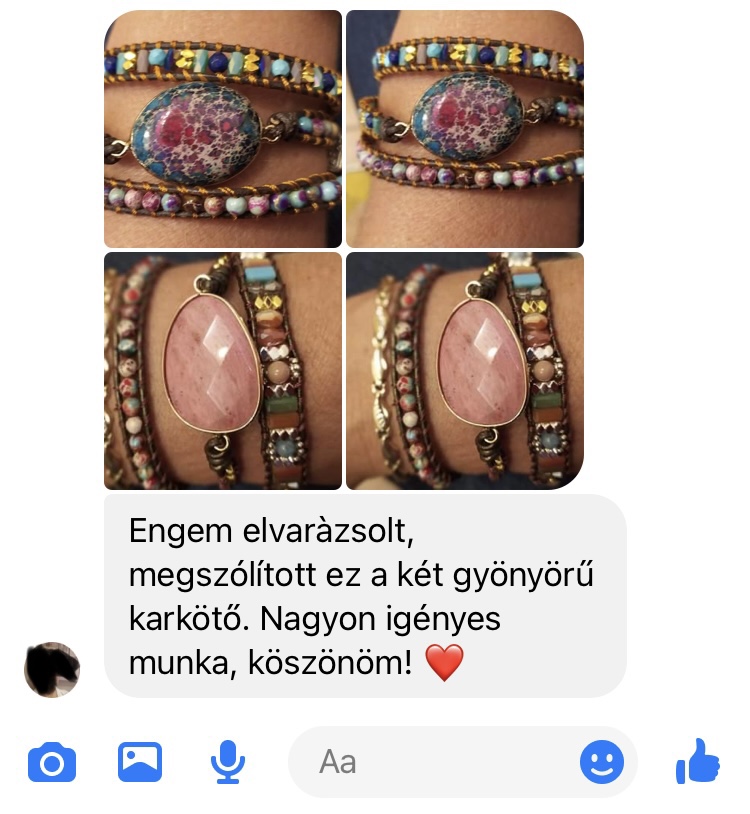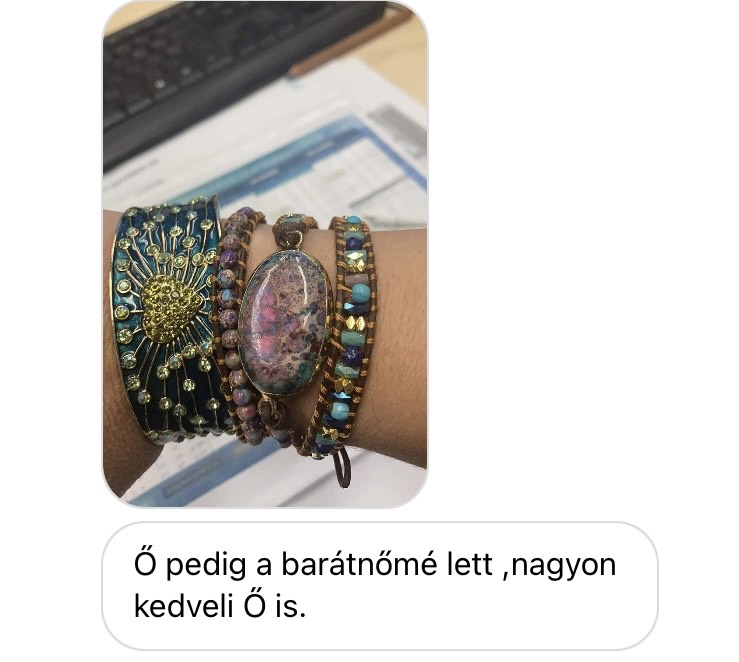 Csodaszép a szett, azóta is minden nap viselem. Mivel hiszek az ásványok gyógyító, teremtő erejében, erre is figyelek. Bevált! Köszönöm!