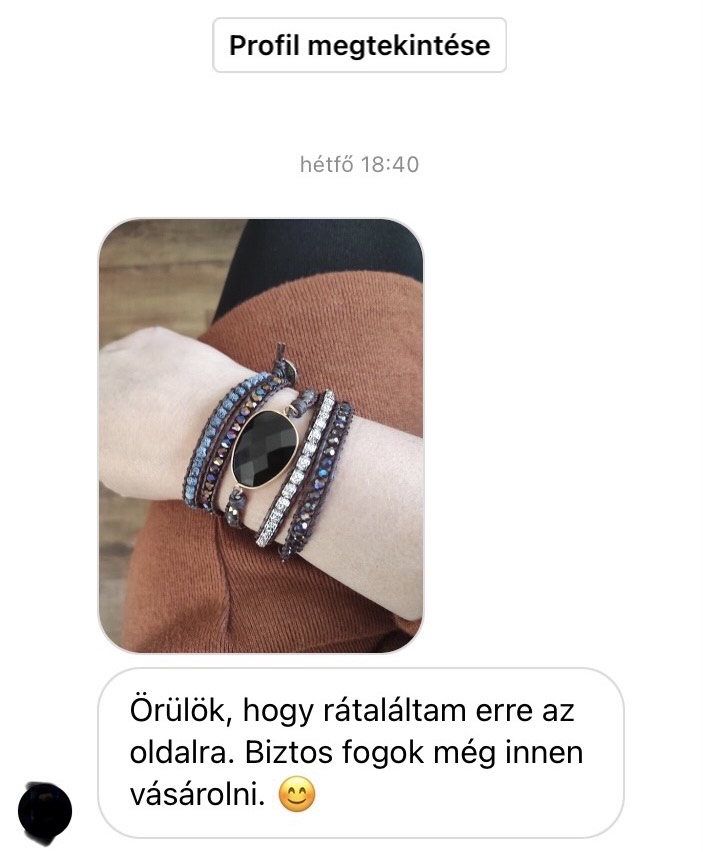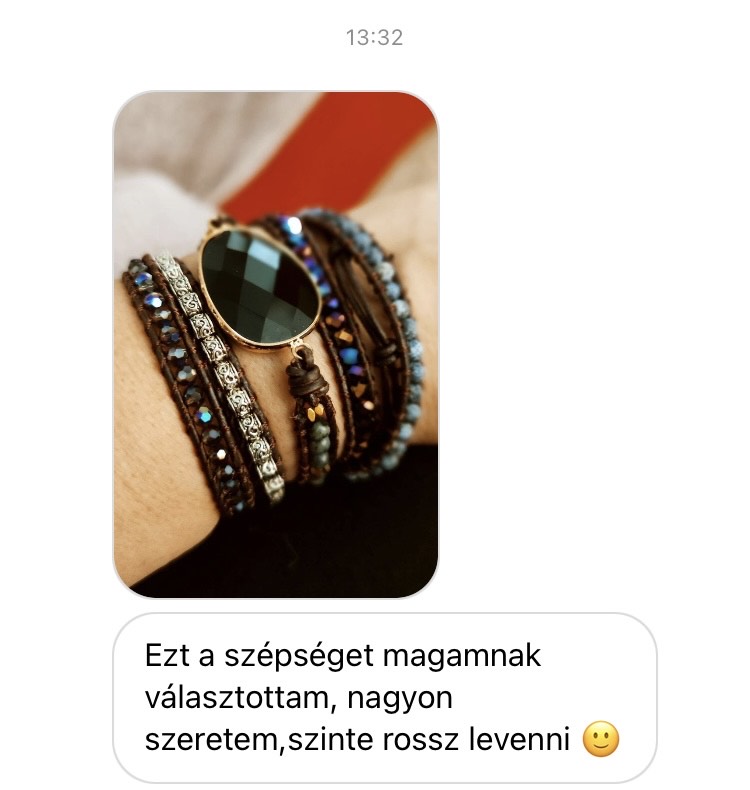 Nagyon szép karkötő. Régóta szívem vágya volt egy ónix karkötő és, hogy lávakővel együtt sikerült venni az felülmúlta az elképzelésemet. Nagyon örülök neki, hogy így nem kell két külön ilyen karkötőket vennem, olyan elegáns, szívesen hordom. Köszönöm.